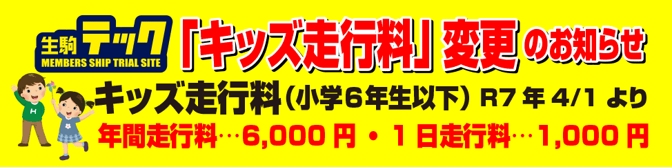 ・生駒テックメンバーズは会員である証を提示して走行してください。
